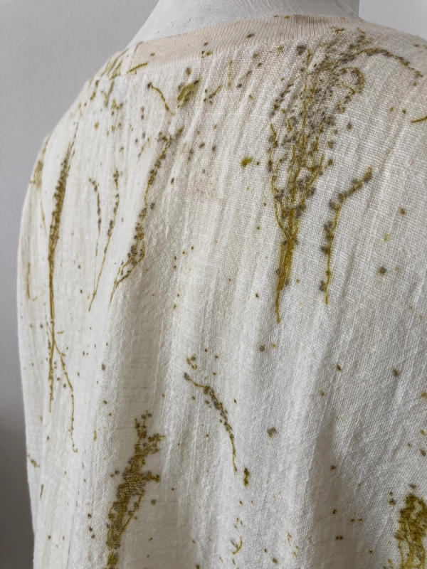 estampado natural: ecoprint con flores de Rumex Acetosella silvestre, recolectada en Bariloche